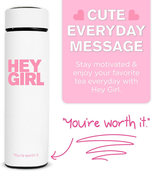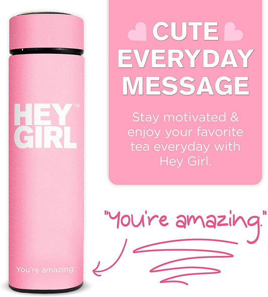 Hey Girl Glass Water Bottle Tea Infuser - 14Oz Insulated Glass Bottles with Tea Steeper & Silicone Sleeve for Loose Leaf Tea & Infused Fruit - Travel Tea Brewer Tumbler Mug - Gifts for Tea Drinkers