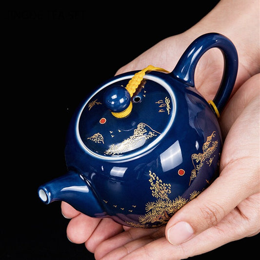 Luxury Palace Style Blue Ceramics Teapot Handmade Filter Kettle Household Tea Set Tie Guanyin Puer Chinese Tea Ceremony Gifts